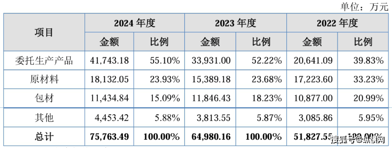 但从数据看,2022年-2024年,其间接材料(次要是自从出产所需)占停业成本的比例别离为46。34%、37。01%、32。72%,委托出产成本占比则为37。51%、48。13%、52。62%,即总体上,委托出产仍然是次要的出产体例。